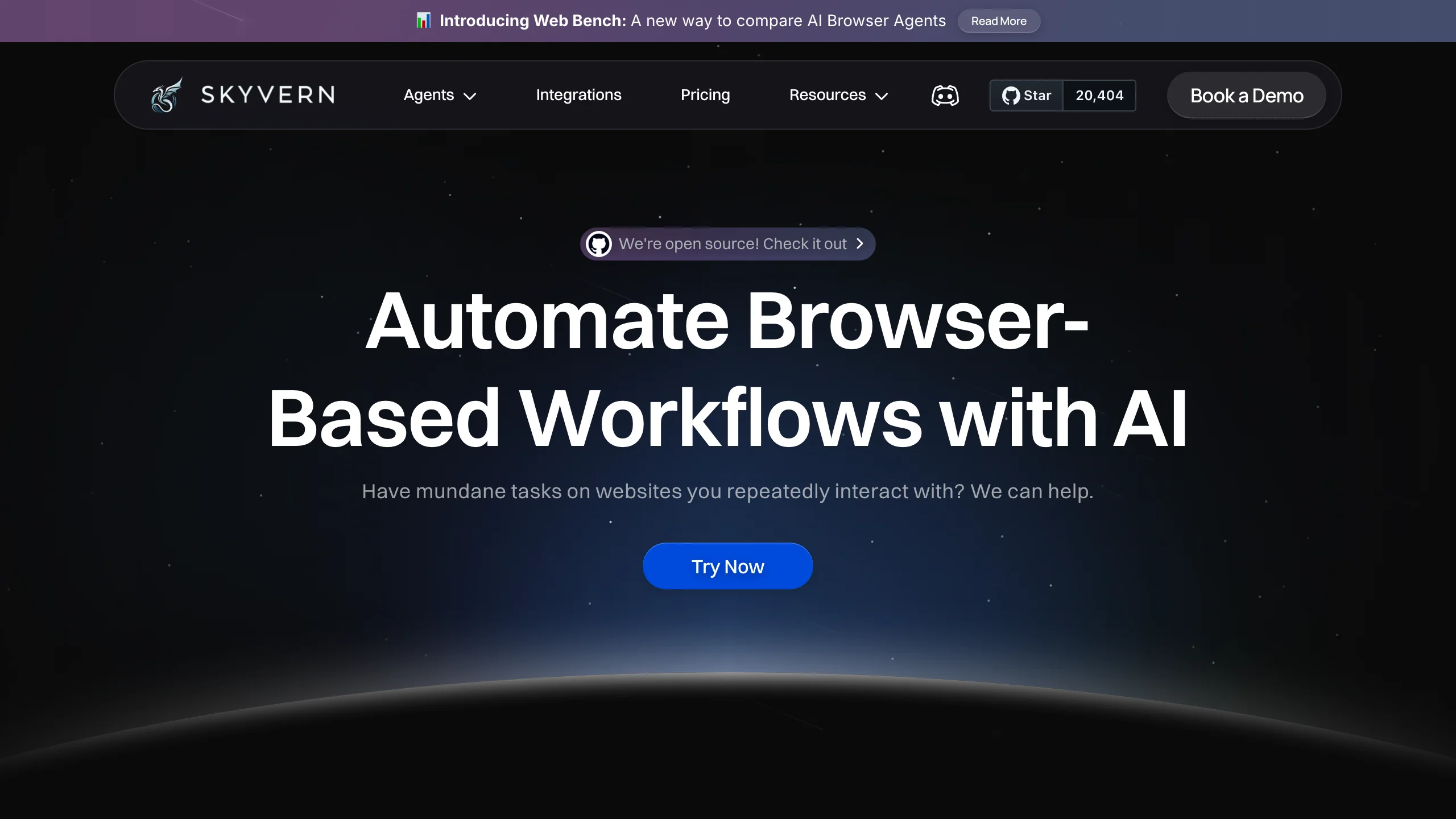 | Skyvern | No-code workflow automation | Open-source + cloud | Free tier, usage-based | 20,000+ |