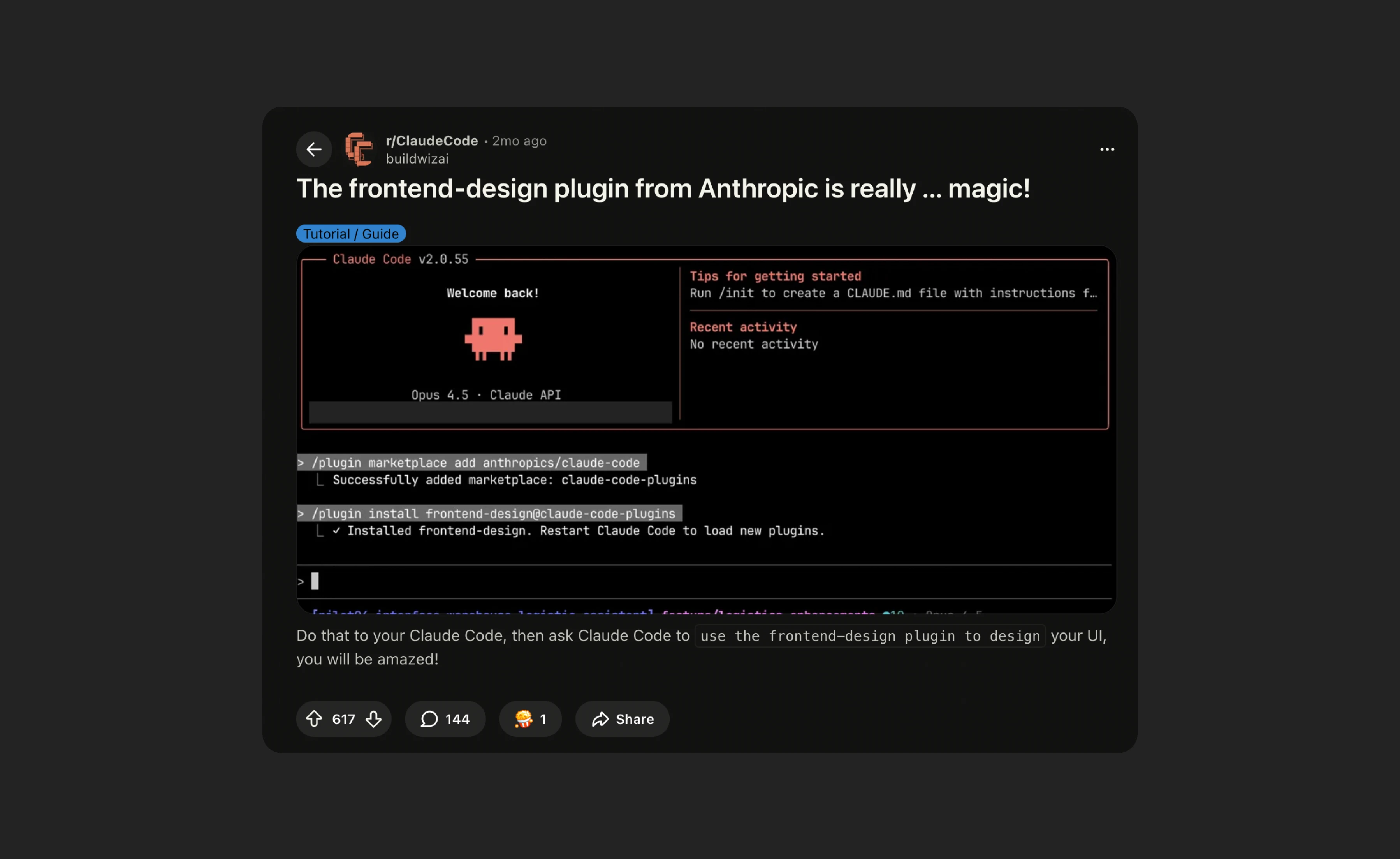 /plugin install frontend-design@claude-plugins-officialExample: