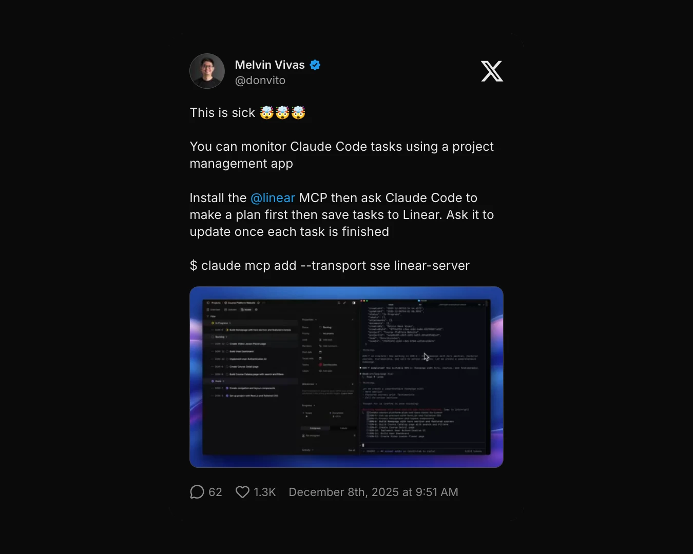 I've been using the Linear MCP plugin in Claude Code, and it's changed how I work with tickets day to day. Being able to pull real issues directly into my coding flow and act on them without jumping tools makes the whole process feel tighter and more focused.