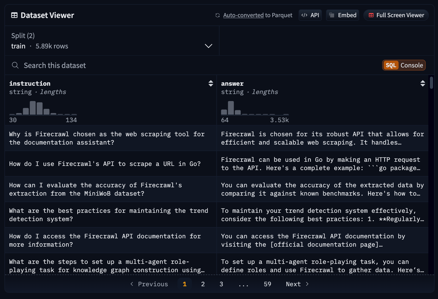 Firecrawl provides web scraping and crawling capabilities through an API interface. Rather than using CSS selectors or XPath expressions which can break when websites change, it uses AI-powered extraction to identify and collect data using natural language descriptions. It can also convert entire websites into collections of markdown documents, which is an ideal format to generate high-quality datasets for LLMs.