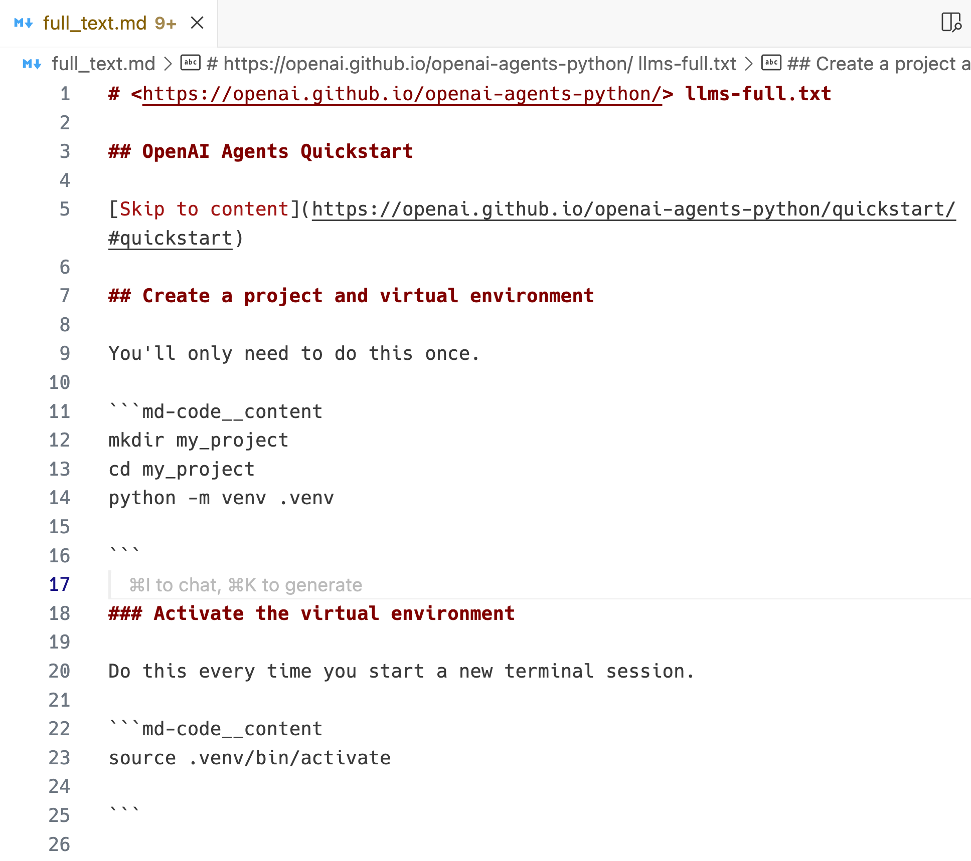 result = scrape_website(url, output_file, max_urls=100)and converts all its contents to a single markdown document that looks like this: