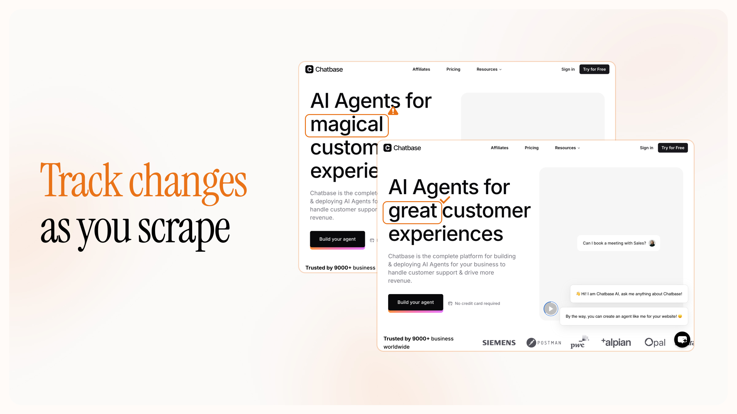 changeTrackingto your scrape or crawl formats. - Learn more: Read the docs for